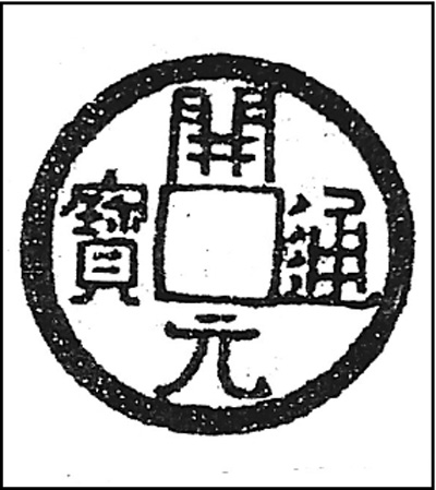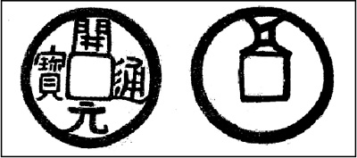 圖②:河曲六胡州之安國的“開元錢”,錢面是“開元通寶”,錢幕是該部的族徽。