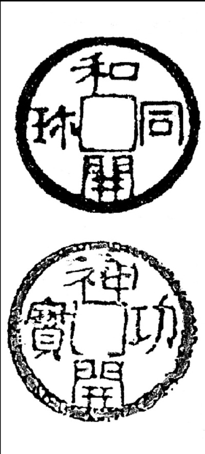 圖④:日本的開寶——“和同開珎”“神功開寶”。