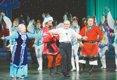 2014年7月2日晚,由第十一屆中國·內蒙古草原文化節組委會主辦,內蒙古自治區舞蹈家協會承辦的《舞悅內蒙古》舞蹈精品展演在烏蘭恰特大劇院精彩上演,賈作光、斯琴塔日哈、查干朝魯三位老藝術家和青年演員們同臺共舞