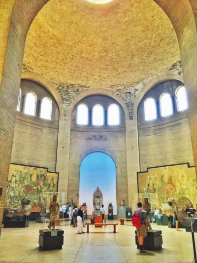 中國藝術是美國賓夕法尼亞大學考古和人類學博物館的收藏特色之一,其中國展廳設在博物館建筑最核心區域———一座圓形的大廳內,擁有數量質量均可觀的中國古代青銅器、陵墓石刻、佛教雕塑和寺觀壁畫等,曾經引領過北美地區中國藝術的收藏風潮?!爸袊鴪A廳”甚至成了北美學界的專有名詞,專指賓大博物館主穹頂下收藏著的藝術奇珍。圖從左至右分別為賓大博物館館藏唐三彩馬以及“中國圓廳”內景。