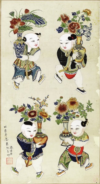 孤本楊柳青年畫《四季平安》(局部),創作于清康熙年間。(展方供圖)