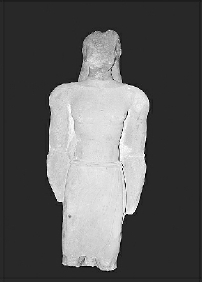 這件雕像的背部扁平,本來可能是靠墻而立。雕像人物身體表面殘存有紅色顏料的痕跡,裙裝之上本來涂有白石膏,二者形成鮮明的對比。根據該神廟中出土的另一尊雕像上的刻銘判斷,這尊雕像人物應該是里西安時期的一位統治者。
