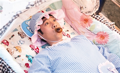 在前段時間一個爆紅的電影MV里,越來越放飛自我的蔡國慶唱著《蔡國慶送你365個“不”祝?!?,一邊惡搞自己的成名曲,一邊化身霸道總裁、奶嘴寶寶和紅領巾少年。前一秒,舉手投足間還是正統的央視范兒,笑容妥帖、歌聲嘹亮。后一秒,就戴上滿是荷葉邊的嬰兒帽化身“巨嬰”。