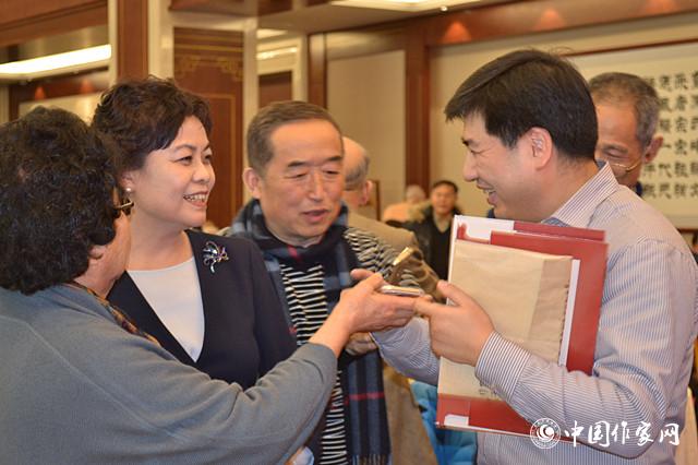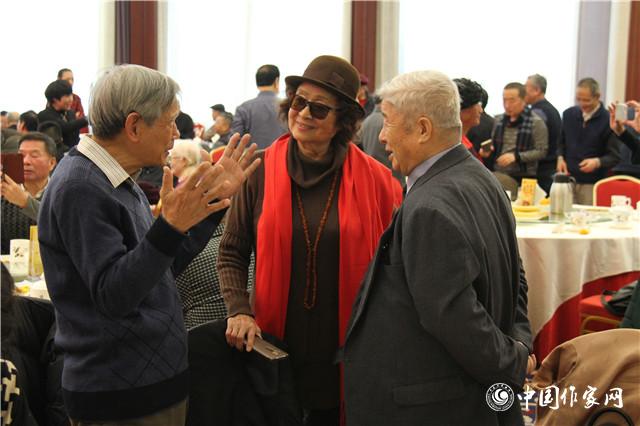 茶話會上,中國作協黨組書記處同志來到老作家、老同志中間,和新老朋友一一握手,暢敘情誼,共談文學,他們所到之處,不時傳來陣陣歡聲笑語。有的老作家拉著鐵凝、錢小芊談文學、說友情,也給中國作協新一年工作提出自己的建議;有的則拿出自己剛出版的作品,贈送給現場的親朋好友;還有的三五好友相聚,紛紛取出手機拍照,記錄下這美好難忘的一刻……