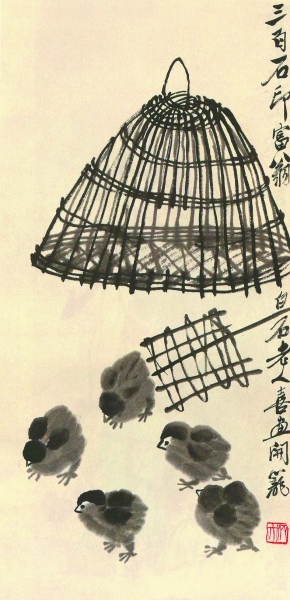 幾筆線條,水墨暈染,憨態可掬的小雞躍然紙上。白石老人畫的小雞,已經成為國人共同的文化記憶。他的小雞被后人廣泛臨摹,還被制成動畫片,堪稱經典。