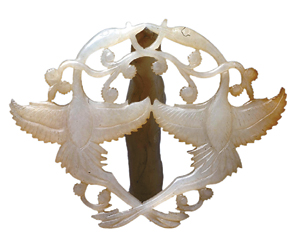 此次展出的都是三館館藏的精品。在“居家篇”中,由首都博物館收藏的“白玉雙鶴銜靈芝紋佩(金) ”出土于房山長溝峪金墓,青白玉質,細潤無暇。體扁,略作橢圓形,以鏤雕加陰刻線紋制成一對飛鶴。鶴口銜靈芝草,嘴尖相對,兩腿合并交叉,比翼齊飛,作對稱狀。飾件正中頂部有鏤空的穿孔,背面光素留有琢磨痕。鶴為吉祥飛禽,以鶴為題材的玉器在金代少見。這件玉佩造型簡潔明快,雕琢生動有力,是金代出土玉器中的珍品。首都博物館收藏的“鏨海水瑞獸紋金盤(明) ”出土于北京右安門外東莊萬貴墓,此金盤以范鑄、鏨花、捶打的工藝制成,口沿飾二方連續回紋一周,中心為一雙鉤篆書“壽”字。盤心與盤沿之間為海水江崖瑞獸紋,水中有若隱若現的馬、龍、獅、象、魚等瑞獸。該器在制作上突出整體的效果,不拘泥于細部的刻畫,呈現出渾厚、粗獷的風格。河北博物院收藏的“鎏金芝鹿紋三足銀盤(唐) ”出土于寬城縣峪耳崖鎮西川村,盤為銀質,花紋鎏金。六瓣菱花形口,折沿,卷葉形三足。盤中心捶出凸起的梅花鹿,鹿頭頂肉芝,似在信步行走。盤沿的六個花瓣中,各飾一組鎏金海石榴花圖案;器型碩大,紋飾疏朗,凸起的花紋鎏金,使浮雕效果更加突出,極具盛唐金銀器雍容華貴的風貌。