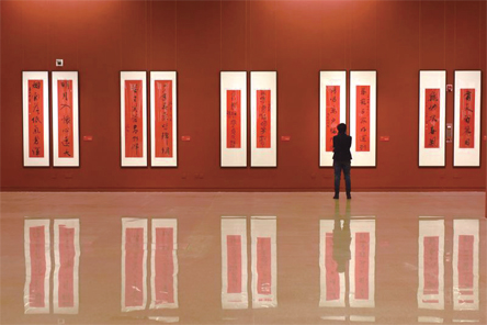 為更好地傳播和弘揚中華優秀傳統文化,1月17日,中國國家博物館與中國書法家協會合作推出為期一個月的“迎雞年春聯展”,通過“春聯”這一飽蘊吉祥祝福、文學意趣和審美價值的文化載體辭舊迎新,為公眾送上一道書法文化盛宴。此次展覽共展出58幅作品,字體豐富多樣,藝術風貌紛呈。參展藝術家中既有德高望重的名家大家,也有風華正茂的中青年才俊。無論是書寫端莊典雅、法度嚴謹的篆、隸、楷書春聯,還是揮灑行云流水、跌宕多姿的行、草書春聯,都傳遞著藝術家們的獨具匠心和誠摯祝福。