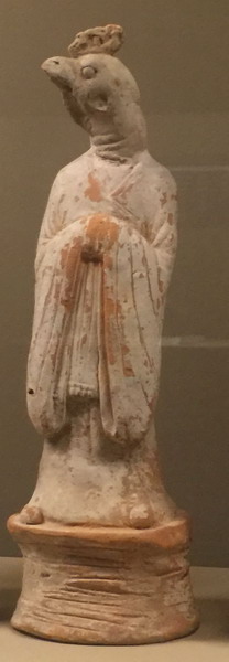 據介紹,以生肖俑隨葬的習俗在唐代以前已出現,隋唐時期漸成體系,一直沿用到宋元。隨著時代的不同,十二生肖俑的形態也發生著變化。臨淄北朝崔氏墓出土的生肖俑是迄今所見時代最早的生肖俑,以動物原形的形式出現,完全是寫實的手法,代表了生肖俑的初始形態。隋代兩湖地區的生肖俑已完全擺脫了之前的動物形象,流行身著寬衣博帶,拱手盤坐,懷抱或頭頂生肖的文官人物俑,并開始出現獸首人身生肖俑。初唐兩湖地區生肖俑以獸首人身拱手持笏板的官員形象為主,多為坐姿,也有部分站姿俑。俑身下方有方形或圓形底座。盛唐以后,基本以帶有底座的獸首人身站姿生肖俑為固定模式。
