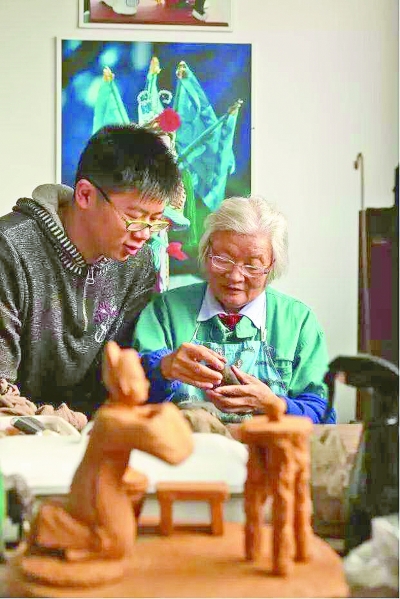 喻湘漣膝下有兩個女兒,大女兒因為有手疾做不了,二女兒對泥人技藝沒興趣,可這門手藝總要傳下去。如此,喻湘漣便把希望寄托在了外孫華天驊身上。帶著小小的私心,喻湘漣把1990年出生的外孫從小就帶在身邊,讓他跟著自己“捏泥巴”,希望用耳濡目染的方式讓外孫對這門手藝感興趣,為這一瀕臨失傳的技藝留下一條根脈。華天驊大學畢業后,回到外婆身邊,正式開始學習泥人捏塑。