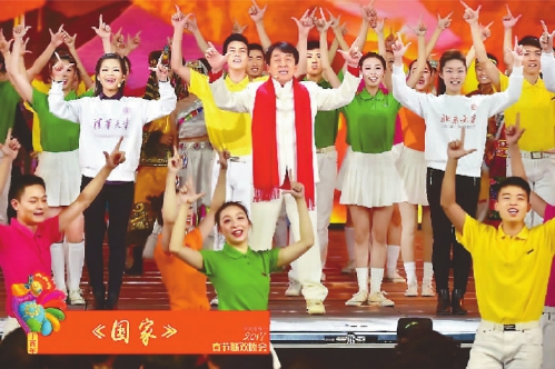 在2017年央視春晚上,成龍與大學生們合唱歌曲《國家》