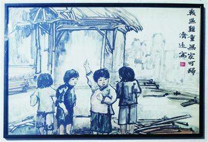 中國知名書畫收藏與鑒定專家顏明,也向上海淞滬抗戰紀念館捐贈了他的抗戰藏品。這些藏品是顏明盡個人之力在全球范圍內搜集的抗戰史料,其中包括一幅名為《戰區難童無家可歸》的水墨戰地遺跡畫,系畫家王濟遠為全力支持前方將士的英勇抵抗,赴淞滬戰地寫生所描繪戰火后的繪畫作品。寥寥幾筆水墨構圖,真實還原了戰爭后的殘垣斷壁,表現了戰火中兒童痛失家園、親人后流離失所的悲慘場景。