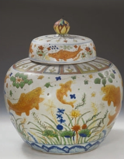 天津博物館藏明代《嘉靖款五彩魚藻紋蓋罐》