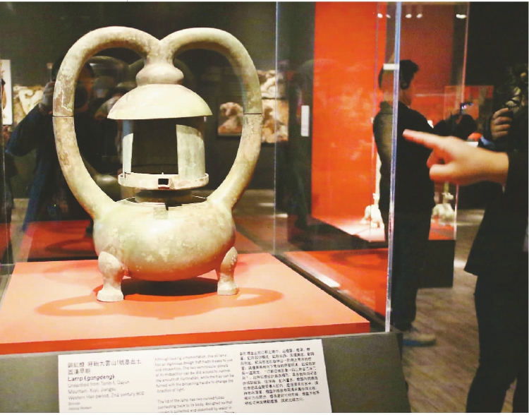 “王陵瑰寶:中國漢代考古新發現”特別展覽2月17日亮相美國舊金山亞洲藝術博物館,首次向美國觀眾展示160余件近期出土的2000多年前漢代珍貴文物。圖為參展文物漢代無煙銅缸燈。