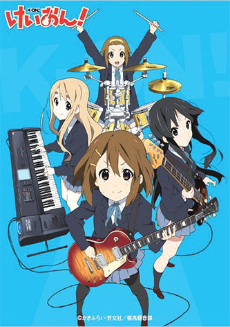 《輕音少女》最初就是一部由漫畫家kakifly創作的四格漫畫。該作品2007年5月開始連載于四格漫畫月刊《Manga Time Kirara》,2010年10月完結。2008年10月,《輕音少女》同時在雜志《Manga Time Kirara Carat》上隔月連載。作品的單行本于2007年4月26日開始發行,共計4卷。2009年1月,京都電視臺著手制作同名動畫作品,4月2日開始在TBS系的電視臺播出。在原畫的基礎上,導演山田尚子及編劇吉田玲子在動畫作品中加入了諸多原創角色,用以豐富形象,完善情節。另外,漫畫原作由于形式所限,雖然人物形象鮮明,對話有力,但是背景過于蒼白;動畫版的創作者們為彌補這一缺陷,將故事的發生地定為京都,根據現實生活中的景象,對動畫中的旅行地、上學路、快餐店、地鐵站甚至學校做了實景化修改。動畫作品一經播出,主人公就讀學校的原型——滋賀縣犬上郡豐鄉町的町立豐鄉小學,立刻吸引了大量《輕音少女》的粉絲前來“朝拜”。