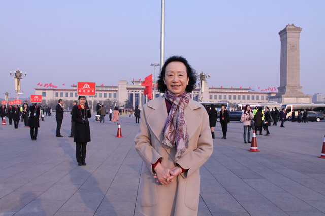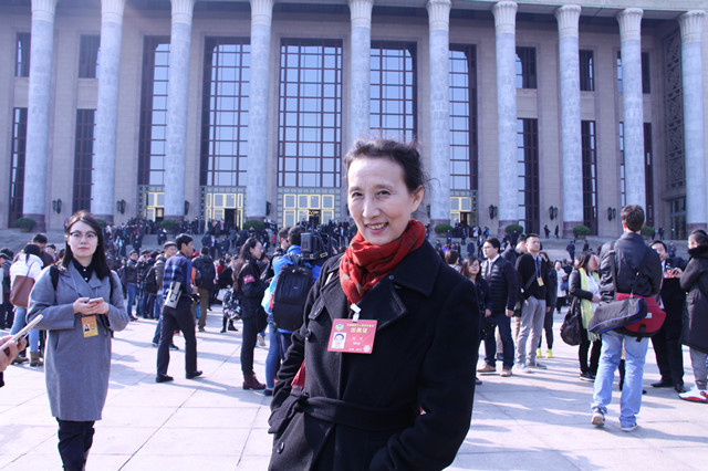 參加全國政協十二屆五次會議開幕會的委員張抗抗