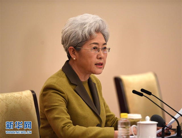 3月4日,十二屆全國人大五次會議在北京人民大會堂舉行新聞發布會。大會發言人傅瑩就大會議程和人大工作相關的問題回答中外記者的提問。新華社記者 燕雁 攝