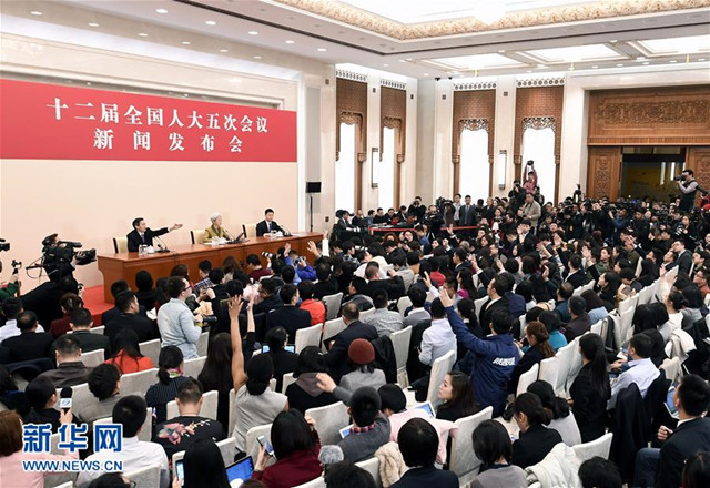 3月4日,十二屆全國人大五次會議在北京人民大會堂舉行新聞發布會。大會發言人傅瑩就大會議程和人大工作相關的問題回答中外記者的提問。新華社記者 金立旺 攝