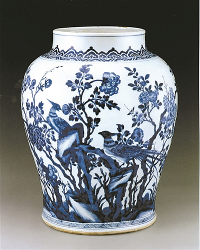清代雉雞牡丹紋青花罐