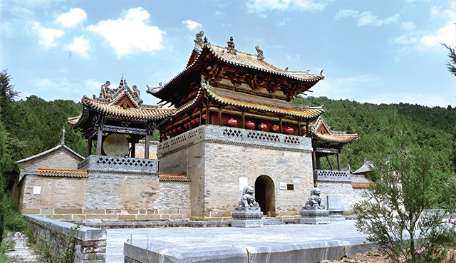 來到山門,可見寺院坐北向南。寺額初名“清涼”,宋改開化禪林,今名開化寺。寺內現存建筑有大雄寶殿、大悲閣、東西配殿、觀音閣、禪堂、偏院等,并有碑碣十余通??计渌聝缺?,開化寺初創于北齊武平二年(571年)。晚唐龍紀、大順間(889—891年),有大愚禪師就山腰鑿穴室建清涼蘭若,寺院規模已相當可觀。宋天圣八年(1030年)改額為開化寺。宋熙寧六年(1073年)重建大雄寶殿。宋元祐、紹圣年間(1086—1098年),再次興工,繪制大雄寶殿內壁畫。金皇統元年(1141年)建觀音閣。元明清各代,屢有修葺,始成今日規模。