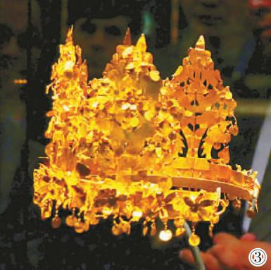 ③蒂拉丘地出土的黃金王冠。本報記者 李韻攝/光明圖片