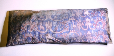 帶人們走近“精絕古城” 成都博物館展出“五星出東方利中國”護膊和“千秋萬歲宜子孫”錦枕