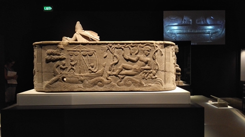 粗粗看來,這個制作于公元前600年的木棺和常見的古埃及木棺差別不大,但實際上它的全部材料都來自埃及以外的地區:木料來自于黎巴嫩,黃金來自努比亞……這也就告訴觀眾,在文明之初,全球化就拉開了序幕。