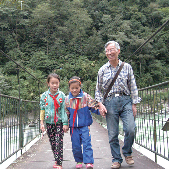 吳然和孩子們。馮牧筆下巴坡小學旁古老的藤索橋,如今已是安全牢固的鋼索吊橋。