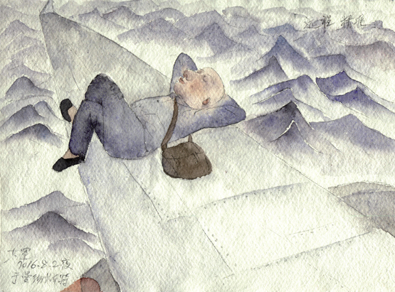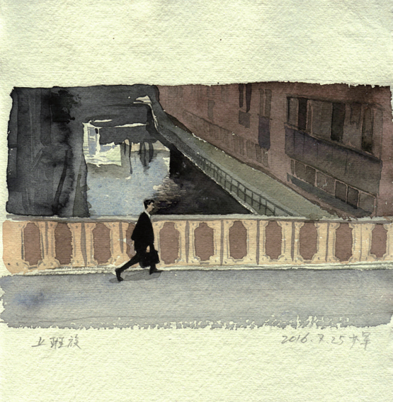 “態——王少軍2016水彩隨筆”展覽并沒有展出他的雕塑,是他有意讓他的雕塑不在場。這是一件比較讓人琢磨的事情,時而在場,時而不在場,時而直言不晦,時而意外反身敘事……何時處何態,逍遙我自知。他不緊不慢沉浸其中,是一種對自身以及自身所棲身的文化自信,是一個文化人的藝術修行,在當前期待價值回歸趨大道的現實語境中具有很好的啟示。