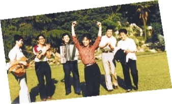 1980年施光南(左2)與關牧村(中)拍《海上生明月》 田丕津攝