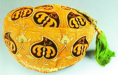 2003年,在樓蘭古城出土的魏晉時期的絲繡手套,手套上以鎖針繡的是流行于西漢時期的云氣紋;其中,卷狀云紋的穿插交接類似信期繡,也頗類似長壽繡中“穗”狀云紋的紋樣,紋樣簡單,不若西漢時期的繁復精致。