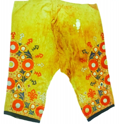 清代哈薩克族鹿皮繡花男褲,新疆博物館藏。