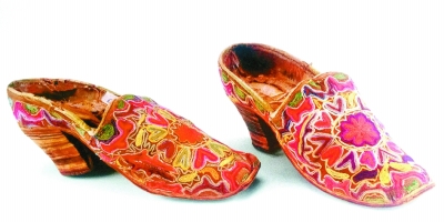 由布皮面料合成的清代維吾爾族繡花高跟女鞋,新疆博物館藏。