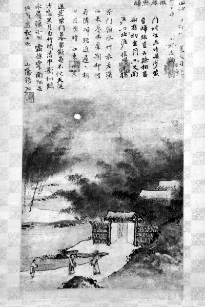 藤田美術館展出的《柴門新月圖》,它是現存最早的詩畫軸。