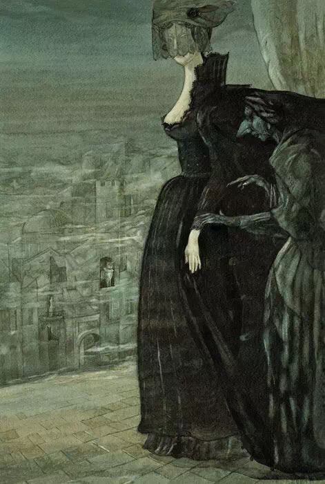 比如說,讓安吉拉·卡特聲名鵲起的中短篇小說集《染血之室與其他故事》便與此前的《新夏娃的激情》等作品不同,它們不再是極具原創性的故事,而全部改編自歐洲的民間故事和童話。特別是中篇小說《染血之室》,它的敘事節奏明顯放慢,喪失了用五花八門的情節使讀者目瞪口呆的潑辣勁兒,而是以舒緩有致的筆調來改寫法國經典童話《藍胡子》。安吉拉·卡特對小說中的每一個場景都進行極為細致的描繪,以至于時間在這部作品中被空間壓垮,進而整個故事幾乎成了由一個個畫面連綴而成的連環畫冊。那夢境一般憂郁的小說世界固然令讀者迷醉,但卻難免讓人覺得灰暗乏味。