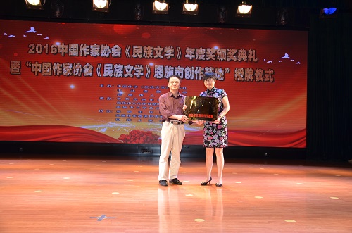 《民族文學》:發揮引領與服務作用,促進少數民族文學創作 2016《民族文學》年度獎頒獎典禮暨“《民族文學》恩施市創作基地”授牌儀式在湖北恩施舉行