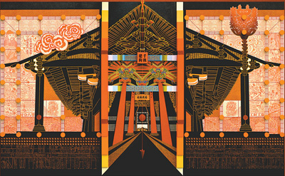 回首五年歲月,感觸頗深:中華歷史源遠流長,傳統文化博大精深,大美不言,大象無形,古人將其精神與意蘊默默地置于我們生活的必需中,潛移默化地融入進我們的血脈里,似山高水長,自然而然地流淌至今。正如《營造法式》蘊含著中華民族無盡的知識與智慧,其意義遠非一件美術作品所能覆蓋。在有限的時間里,我們對中華文明的解讀和對“中華營造法式”的認識與理解同樣是有限的,具體轉換成的版畫作品,仍存在疏漏、不足和遺憾。今天,雖然“工程”已經竣工,但我們的使命和責任尚未完成,相關學理性總結、學術性探討及價值傳播仍在進一步的推進中。