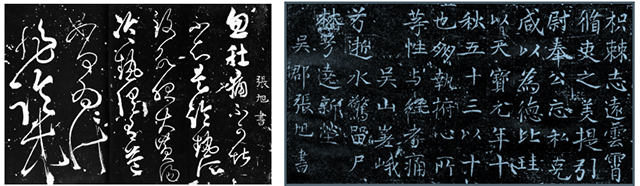 左:張旭《肚痛帖》 右:張旭《嚴仁墓志》