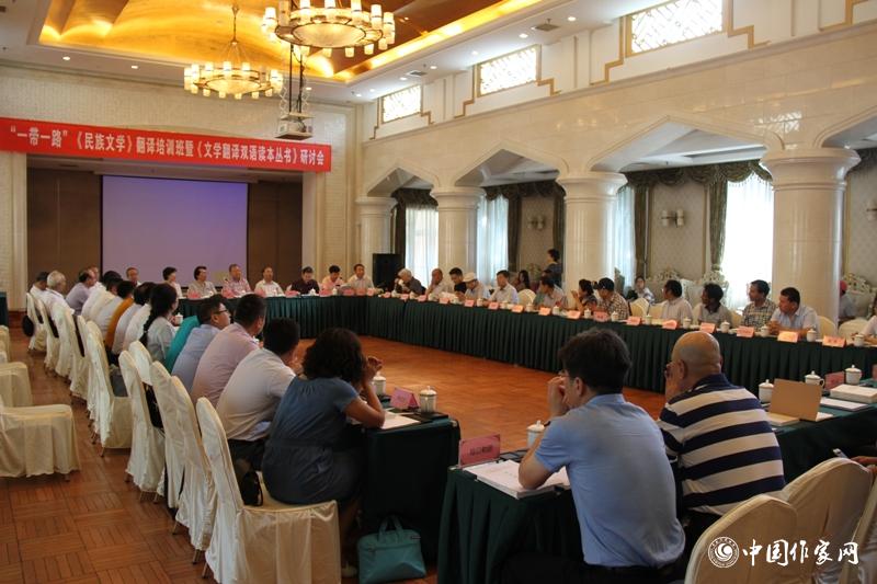 6月20日,由民族文學雜志社、中國文化譯研網、中譯出版社、中國少數民族作家學會聯合主辦的“一帶一路”《民族文學》翻譯培訓班暨《文學翻譯雙語讀本叢書》研討會在北京舉行。來自漢、蒙、藏、維、哈、朝等多個民族的50多位作家翻譯家評論家代表參加為期3天的培訓及研討。