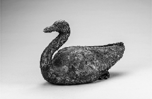 此秦代銅雁出土于距秦始皇陵園最遠的一座陪葬坑,坑內有象征性河道,46件銅禽排列在河道兩側,其中銅鶴6件,銅天鵝20件,其他為鴻雁等禽類。