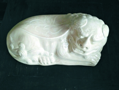 當年乾隆皇帝在得到一件宋代定窯白瓷孩兒枕時非常欣喜,特地作了一首詩:“瓷枕通靈氣,全勝玳與珊。眠云渾不覺,夢蝶更應安?!倍ǜG一直被視為宋代五大名窯之一,創燒于河北定州曲陽,河南當陽峪窯、禹州扒村窯和魯山段店窯都生產有定瓷一類的器物,通常被稱為定窯系。特別要引起關注的是,近年發現的段店定瓷,其種類和質量都比曲陽定瓷更勝一籌,色彩有白、粉、綠、黃、醬、黑等多種,器型有瓶、盤、枕、壺、尊等,燒制于北宋早中期,燒制溫度比曲陽定窯略高。白瓷顏色也較為潔白,?;潭容^高,瓷胎也較精細,并出現不少宮廷刻款。當地的藏家認為段店定瓷有可能是皇家用瓷,理由是魯山屬于汝州轄下,而汝窯為繼定窯之后的北宋官窯。汝州離京師不遠,既然有能力生產這么精美的白瓷,完全沒有必要舍近求遠,到河北的曲陽去生產官窯白瓷。目前見到的段店白定瓷工藝制作水平達到很高的程度,筆者收藏的瓷枕中就有工藝復雜、制作精細的,如一件白瓷獅枕,刻花極其精細,獅子的毛發纖毫畢現,獅子的塑造結構復雜,立體感強,十分罕見。當然還有印花、劃花、剔花各種造型和工藝的瓷枕,有的填補了國內外博物館空白。