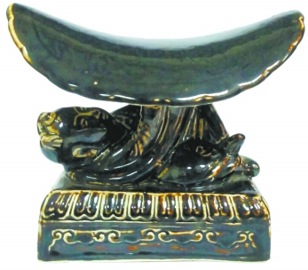 筆者沒有專題收藏瓷枕,但每見制作精美的宋代瓷枕,往往不忍放手,特別是近十年來新發現的河南魯山段店窯中,有不少宋代的定瓷,其中的瓷枕品種很多,品質也很高。如圖中的醬釉孩兒荷葉枕,就十分珍稀。瓷枕塑一個小童仰臥擎一片荷葉,以荷葉作枕面,構思奇特,富有動感。枕面還暗刻卷草紋,座臺四周剔蓮花如意圖案,集多種工藝于一體。以荷花為題材的瓷枕,在夏日中給人以清涼的感覺,宋人就有詠荷花詩句:“暑天勝似涼天好,葉氣過于花氣清”。荷葉的清香之氣比荷花的香氣還要濃郁清爽,不難想象頭枕這片荷葉的涼爽感覺。