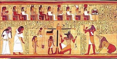 大英博物館所藏的這類埃及文物中,堪稱鎮館之寶的 《亞尼的死者之書》,就是古埃及生死觀的明白表現。死者之書是古埃及常見的隨葬物品。篤信來世的古埃及人用水生植物紙莎草芯制成長長的紙卷,在上面記載死者為獲永生所必經的各種磨練、審判、所需的咒文等等并配以插圖,以求死者逢兇化吉,安然到達極樂世界。收藏家佛里斯班士于1887年在尼羅河中游克索西岸的墓室中發現了 《亞尼的死者之書》,墓主亞尼是距今約3200年前的真實人物。這一死者之書可謂迄今已知以草紙記錄的死者之書中保存最完善、描繪最精美的。其中,最有名的段落是“秤心儀式”:天平上,死者的心臟與正義女神翅膀上的一根羽毛加以比較,心臟若不重于羽毛,則說明死者生前積德,可享永生,否則,心臟便會被畫面右邊的怪物所吞噬,死者沒法進入來世。畫中,有的神在調整天平的精確度,有的神準備記錄測量,有的神在擔任陪審,一個神與人共存的世界躍然紙上,反映出古埃及人對神靈的虔誠信仰。