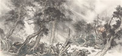 黎雄才、關山月、楊之光是這一時期的嶺南畫派代表。黎雄才的《武漢防汛圖》,是對綿延數百里的抗洪防汛的史詩般鋪陳,其成功意味著可以用肯定的答案,回應上世紀50年代初期“中國畫沒有反映現實生活尤其是反映大場面斗爭生活的能力”的詰疑。關山月有效拓展了中國畫的表現能力,繪畫語言隨著不同對象場景進行自我調整,尤其是將中國畫色彩與墨法形成有機體系,逼真再現了自然對象的體積結構和空間氛圍,《綠色長城》《山村躍進圖》便是卓越的體現。楊之光則重新組織了中國人物畫題材的視覺敘事邏輯,極大提升了其參與現實的力度,如作品《一輩子第一回》,正是以古法述當下、一人喻萬眾、小事涵深意、平凡彰歷史的典范。他還通過寫意性筆法重構了筆墨與造型深層結合的模式,將外光甚至是側光、逆光引入中國畫,代表作如《激揚文字》《礦山新兵》。胡一川于20世紀50年代開始從版畫轉向油畫創作,他的《開鐐》嘗試將表現主義風格與中國民間美術相結合,是新中國社會主義油畫的早期名作。羅工柳積極探索革命現實主義美術的創作方法,其《地道戰》《整風報告》等作品,為中國革命歷史題材主題性創作提供了如何塑造典型的杰出范例。這一時期,廣東美術的重要藝術家還有潘鶴、唐大禧、湯小銘、梁明誠、林墉、郭紹綱、陳衍寧、潘嘉俊等,他們都展示出統一政治主題和藝術技巧的非凡才能,并且平衡了社會評價與個人選擇,整合了真誠信仰與道德要求,將個人情感與社會情感完美統一于流露自然之境。