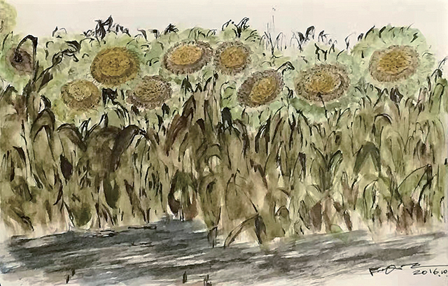 后草地向日葵(水彩速寫)