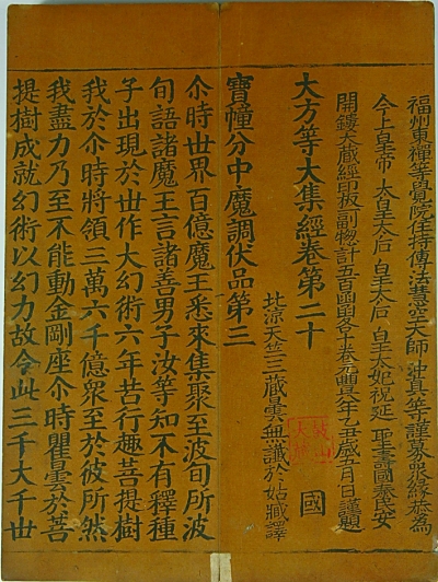 太原市文物考古研究所存宋元豐八年《大方等大集經》卷第二十卷首題記。 韓革攝/光明圖片