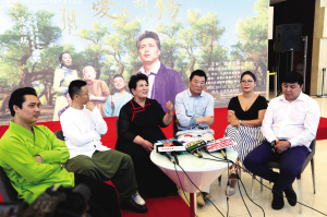 德德瑪(左三)和《愛在胡楊》主創人員接受媒體采訪。 王珍攝