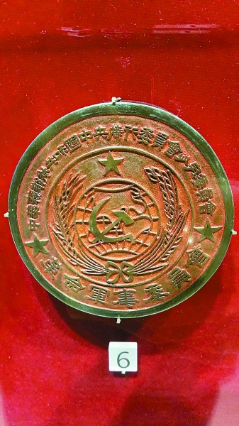 來到“在土地革命戰爭中誕生成長”展區,可以看到明亮的玻璃柜里陳放著一枚醒目的大印,即“中華蘇維埃共和國執行委員會人民委員會革命軍事委員會”印。