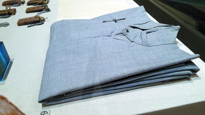 “奪取全國解放戰爭勝利”展區中,一件灰藍色的長衫整齊疊放著。提及這件展品,程定飛有些激動,“這是閻又文穿過的,他為我黨和平解放北平作出了巨大貢獻。去年底,他的家人主動向董館長提供信息,我們取得聯系后,又專程把這件長衫送過來?!?/p>