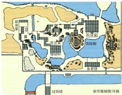 嘉慶十六年時,嘉慶皇帝又進行了大規模重修,重修后的園林建筑包括延清堂、含碧樓、芝蘭室、挹霞亭、靜怡齋、錦縠洲、觀豐榭等。