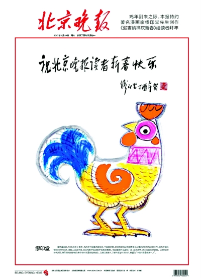 被譽為“科普漫畫第一人”的著名漫畫家繆印堂于7月31日晚9時去世,享年82歲,繆印堂曾說:“假如有來世的話,我會再選擇漫畫這條人生之路?!?017年丁酉年大年初一北京晚報彩印封套的雞年生肖畫,就是繆印堂先生今年1月初專門為晚報創作的。